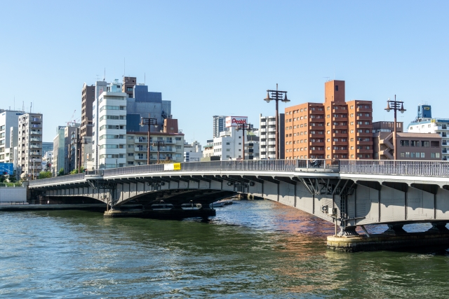 中央区と墨田区をまたぐ橋。両国国技館も近く都会の雰囲気の中、釣りが楽しめるポイントです。