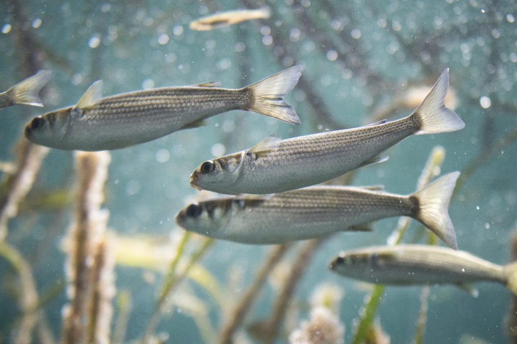 何のベイトにしているのか、手がかりが欲しいため水面をライトで照らしてみると、、、
