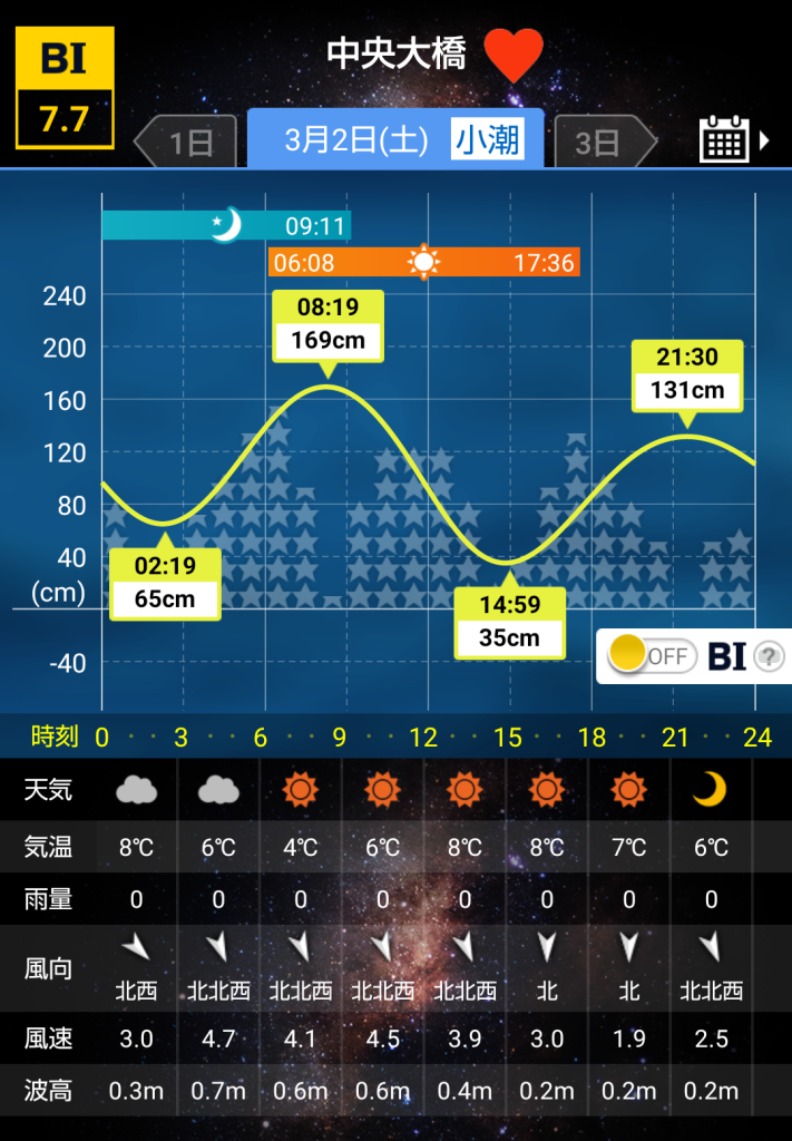 さてさて、まずは、シーバスが明暗部についているか確認するしてみた。